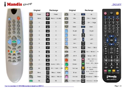 Un document est inclus pour vous aider à utiliser facilement la nouvelle télécommande, en indiquant la correspondance des boutons.