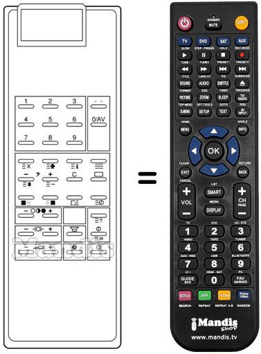 Télécommande qui remplace celle d'origine car elle possède les mêmes fonctions.