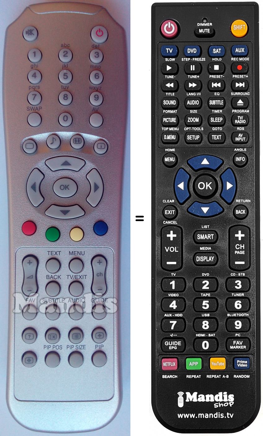 Télécommande qui remplace celle d'origine car elle possède les mêmes fonctions.
