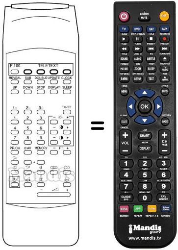Télécommande qui remplace celle d'origine car elle possède les mêmes fonctions.
