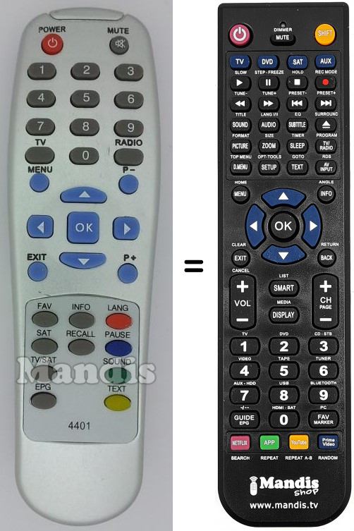 Télécommande qui remplace celle d'origine car elle possède les mêmes fonctions.