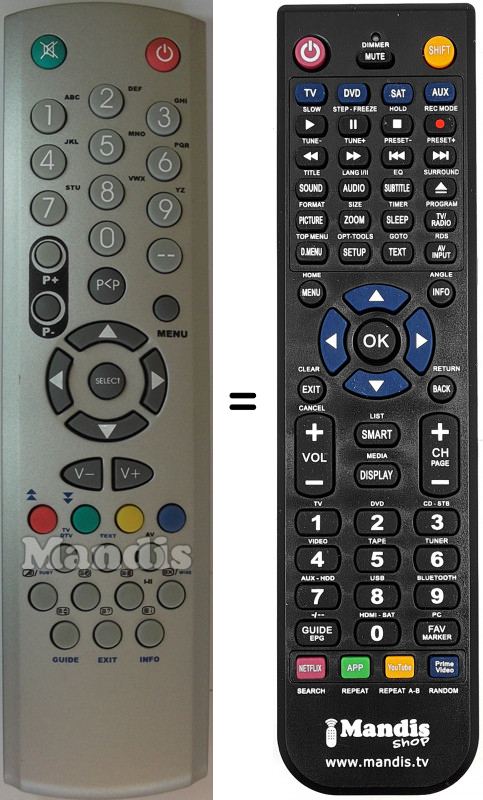 Télécommande qui remplace celle d'origine car elle possède les mêmes fonctions.