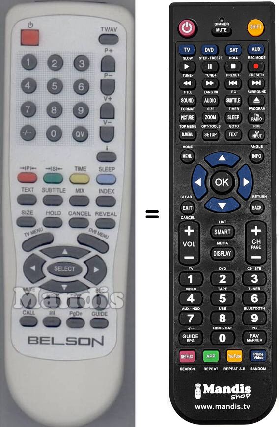Télécommande qui remplace celle d'origine car elle possède les mêmes fonctions.