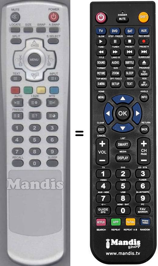Télécommande qui remplace celle d'origine car elle possède les mêmes fonctions.