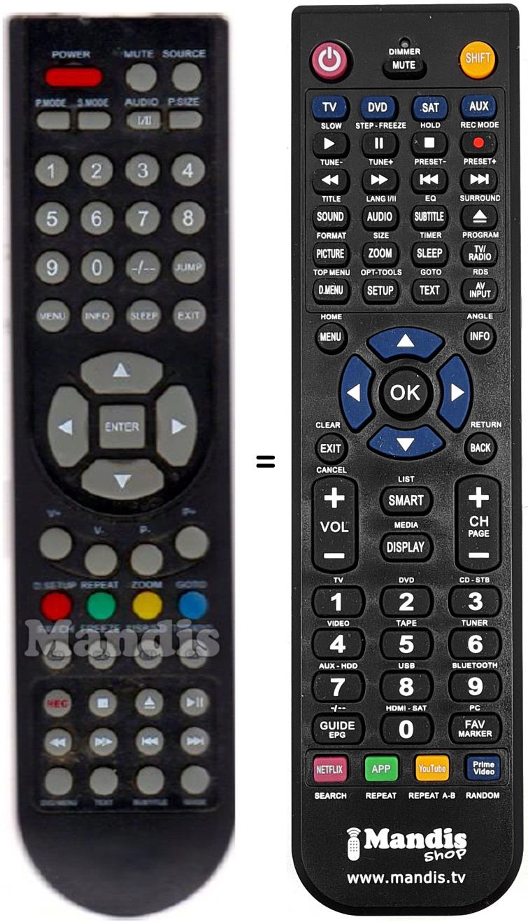Télécommande qui remplace celle d'origine car elle possède les mêmes fonctions.