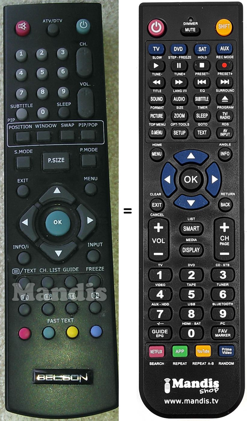 Télécommande qui remplace celle d'origine car elle possède les mêmes fonctions.