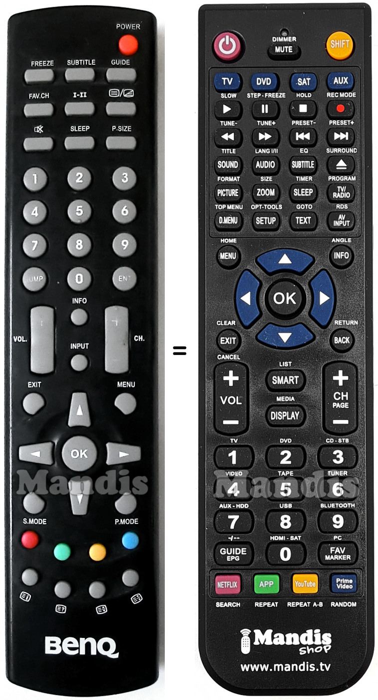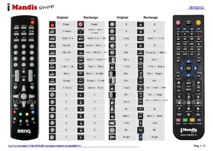 Cette télécommande remplace entièrement votre BenQ002 et offre toutes les fonctions de l'originale.