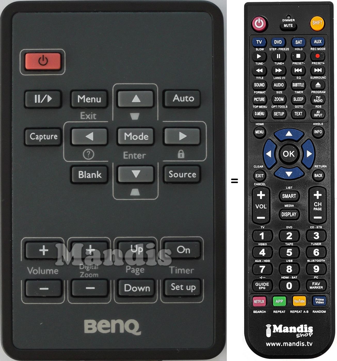 Télécommande qui remplace celle d'origine car elle possède les mêmes fonctions.