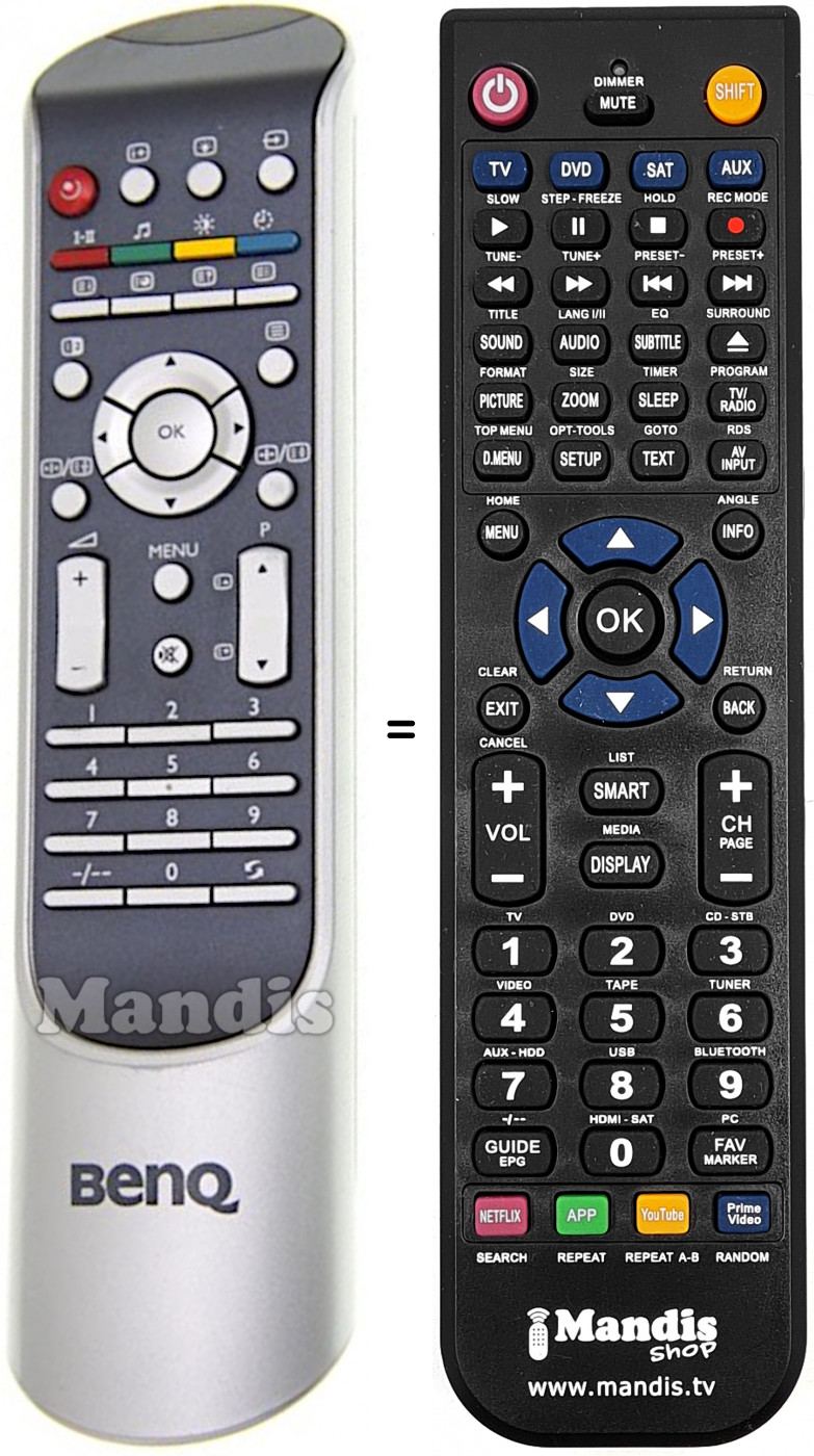 Télécommande qui remplace celle d'origine car elle possède les mêmes fonctions.