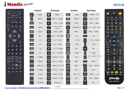 Un document est inclus pour vous aider à utiliser facilement la nouvelle télécommande, en indiquant la correspondance des boutons.