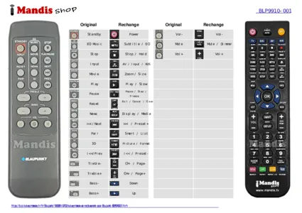 Un document est inclus pour vous aider à utiliser facilement la nouvelle télécommande, en indiquant la correspondance des boutons.