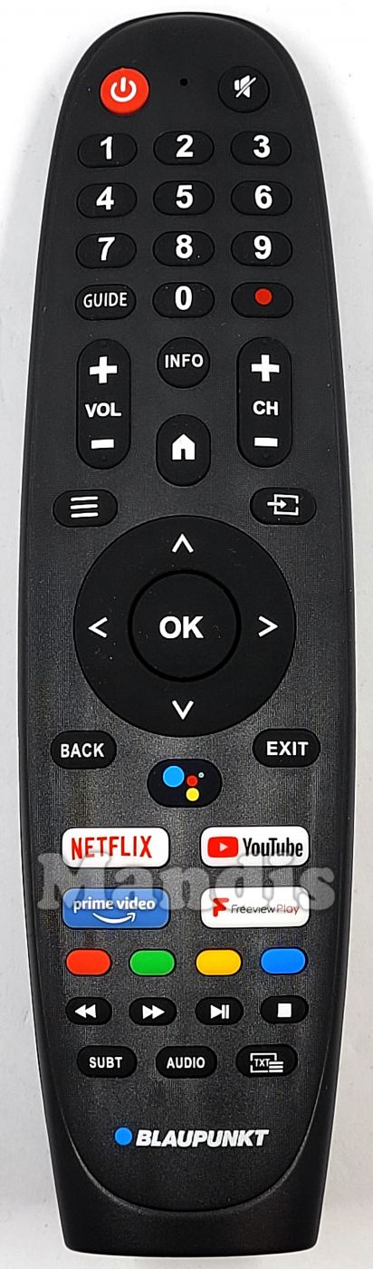 Power, Mute, 1, 2, 3, 4, 5, 6, 7, 8, 9, 0, Guide, Rec, Vol+, Vol-, Info, Home, CH+, CH-, Menu, Input, Up, Left, Right, Down, OK, Back, Smart, Exit, Netflix, YouTube, Prime Video, FreeviewPlay, Red, Green, Yellow, Blue, <<, >>, Play / Pause, Stop, Subt, Audio, TXT