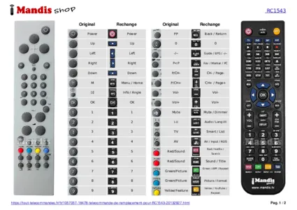 Cette télécommande remplace entièrement votre RC 1543 (08001013) et offre toutes les fonctions de l'originale.