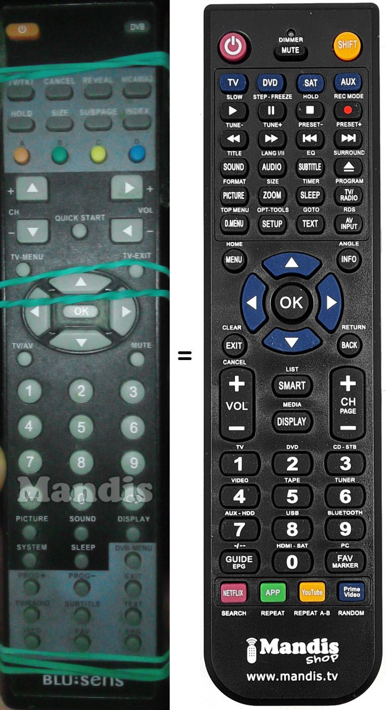 Télécommande qui remplace celle d'origine car elle possède les mêmes fonctions.