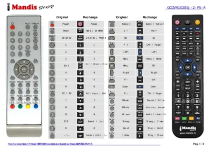 Cette télécommande remplace entièrement votre GCOVA1028SJ-2-PS-A et offre toutes les fonctions de l'originale.