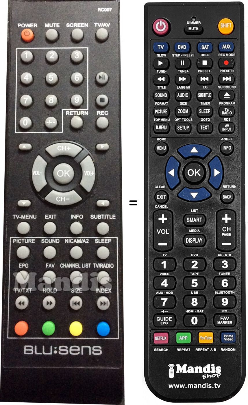 Télécommande qui remplace celle d'origine car elle possède les mêmes fonctions.
