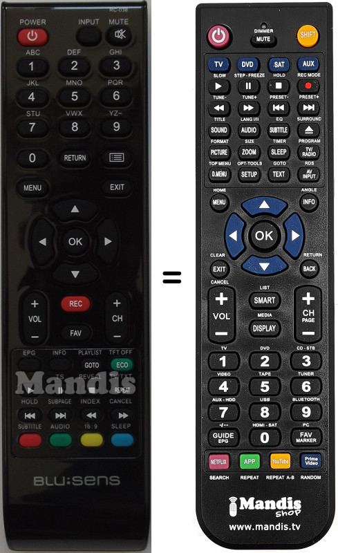Télécommande qui remplace celle d'origine car elle possède les mêmes fonctions.