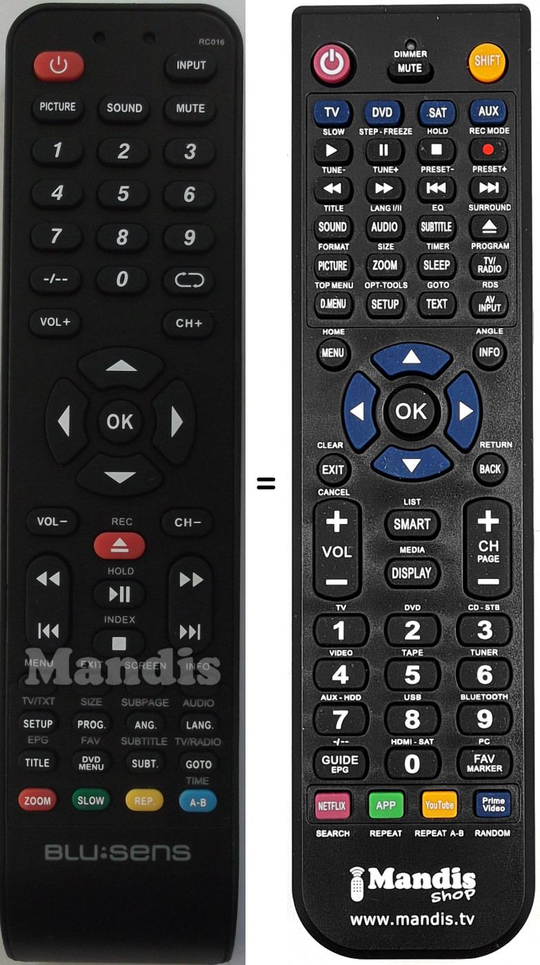 Télécommande qui remplace celle d'origine car elle possède les mêmes fonctions.