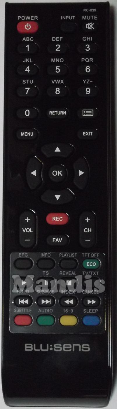 Télécommande d'origine RC039 pour téléviseurs de la marque Blusens. Il s'agit d'un modèle de télécommande d'origine.