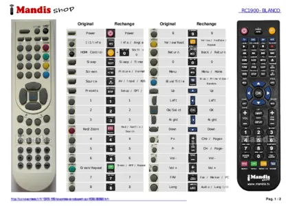 Un document est inclus pour vous aider à utiliser facilement la nouvelle télécommande, en indiquant la correspondance des boutons.