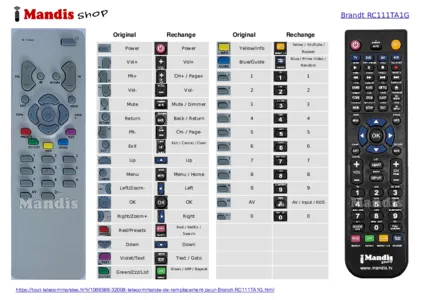 Accueil > Marques > Télécommandes Brandt > Télécommande pour Brandt RC 111 TA 1 G