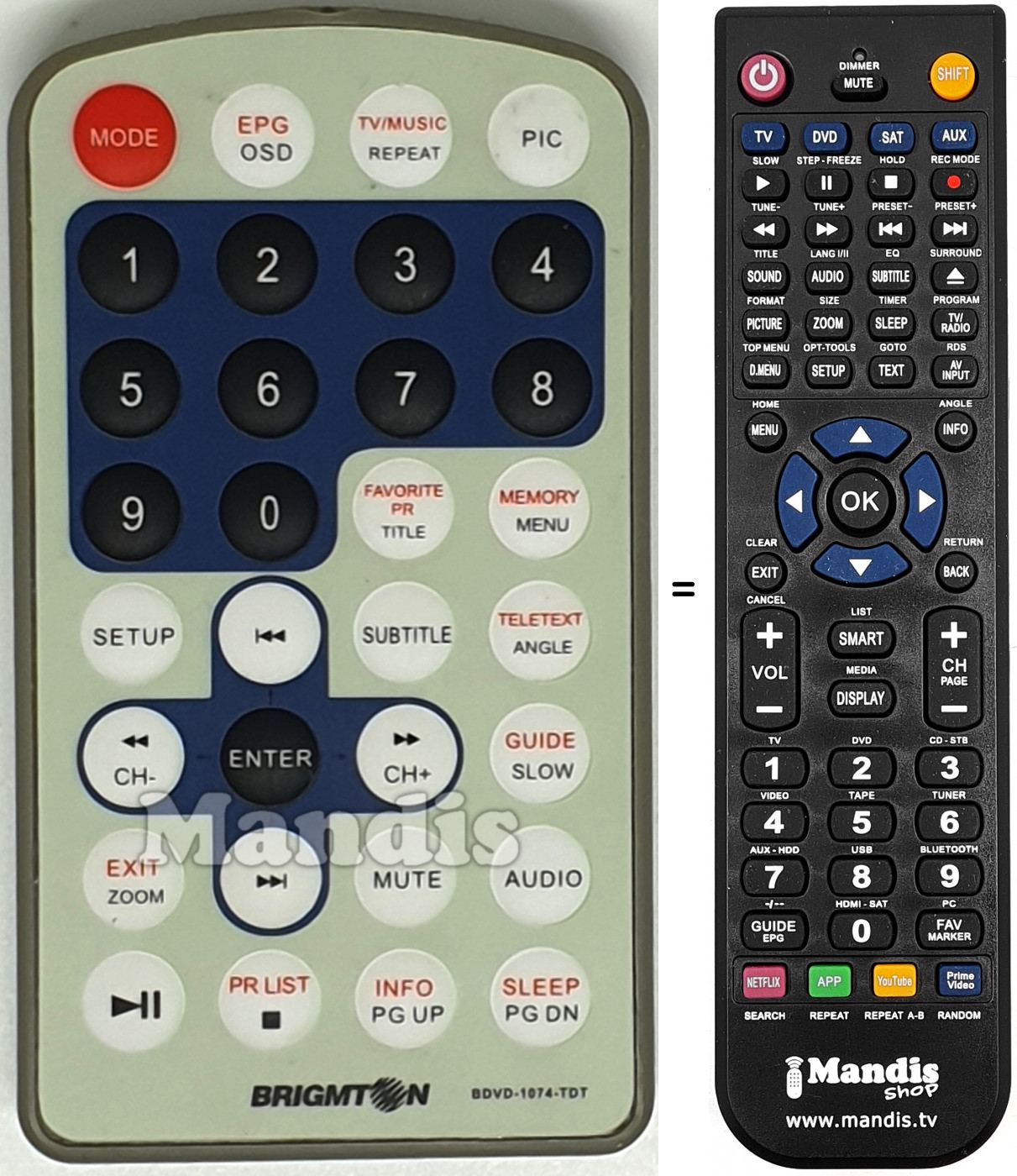 Télécommande pour BRIGMTON BDVD-1074-TDT