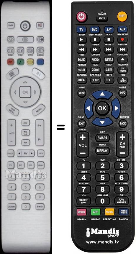 Télécommande qui remplace celle d'origine car elle possède les mêmes fonctions.