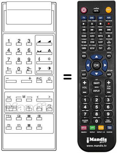 Télécommande qui remplace celle d'origine car elle possède les mêmes fonctions.