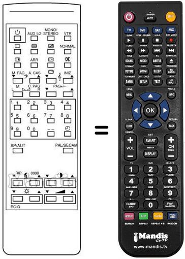 Télécommande qui remplace la télécommande d'origine RC-Q car elle possède les mêmes fonctions.
