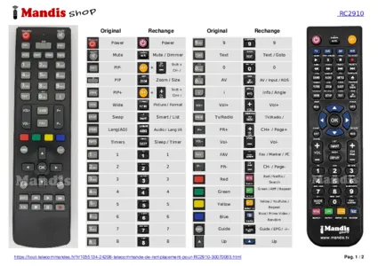 Cette télécommande remplace entièrement votre RC2910 et offre toutes les fonctions de l'originale.