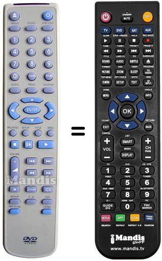 Télécommande qui remplace celle d'origine car elle possède les mêmes fonctions.