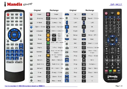 Un document est inclus pour vous aider à utiliser facilement la nouvelle télécommande, en indiquant la correspondance des boutons.