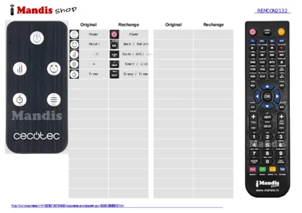 Un document est inclus pour vous aider à utiliser facilement la nouvelle télécommande, en indiquant la correspondance des boutons.