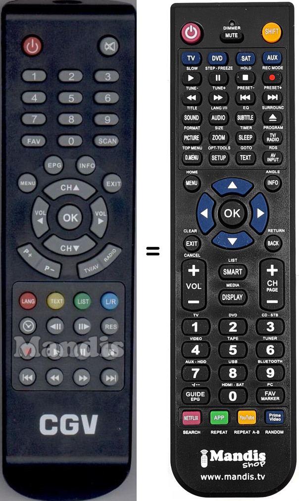 Il ne s'agit pas d'une télécommande universelle mais d'une télécommande qui remplace celle d'origine.