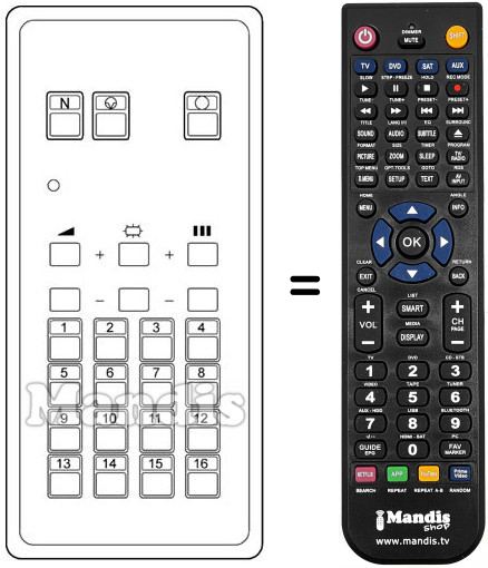 Télécommande qui remplace celle d'origine car elle possède les mêmes fonctions.