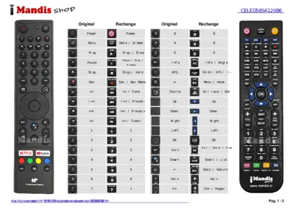 Un document est inclus pour vous aider à utiliser facilement la nouvelle télécommande, en indiquant la correspondance des boutons.