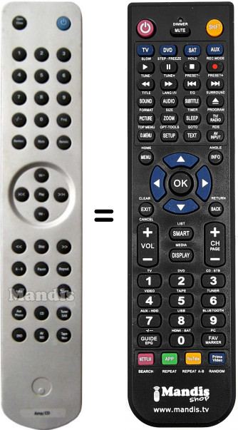 Télécommande qui remplace celle d'origine car elle possède les mêmes fonctions.