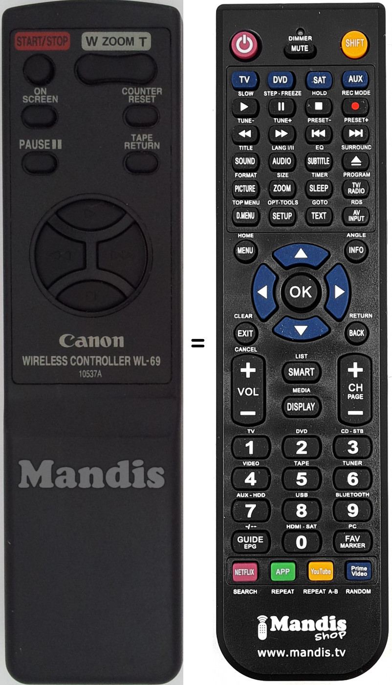 Télécommande rechange 10537A (WL-69) de la marque Canon.