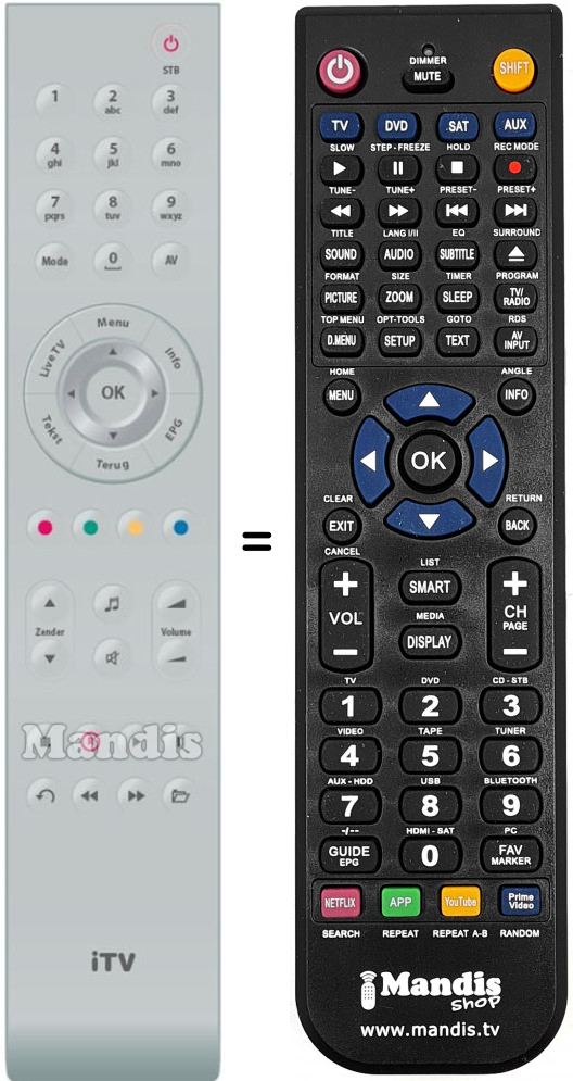 Télécommande qui remplace celle d'origine car elle possède les mêmes fonctions.