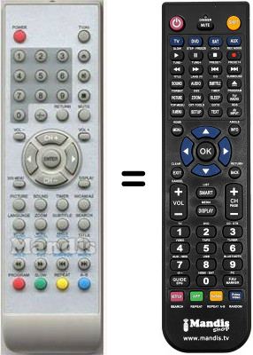Télécommande qui remplace la télécommande d'origine TP1907DVERS2 car elle possède les mêmes fonctions.