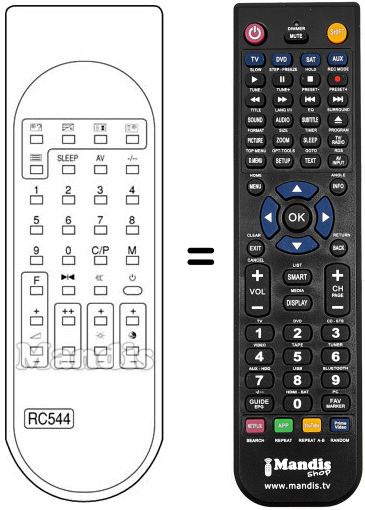 Télécommande qui remplace celle d'origine car elle possède les mêmes fonctions.