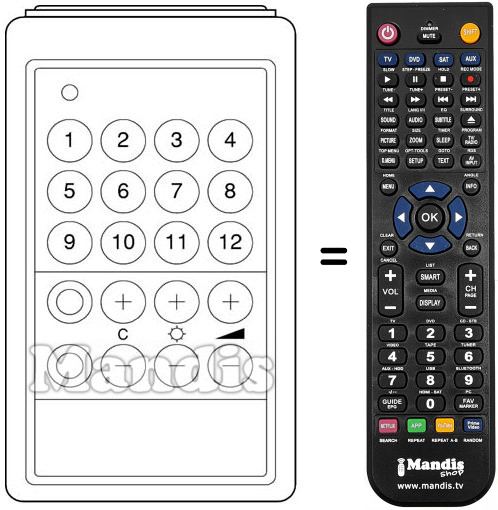 Télécommande qui remplace celle d'origine car elle possède les mêmes fonctions.