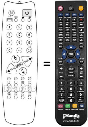 Télécommande qui remplace celle d'origine car elle possède les mêmes fonctions.