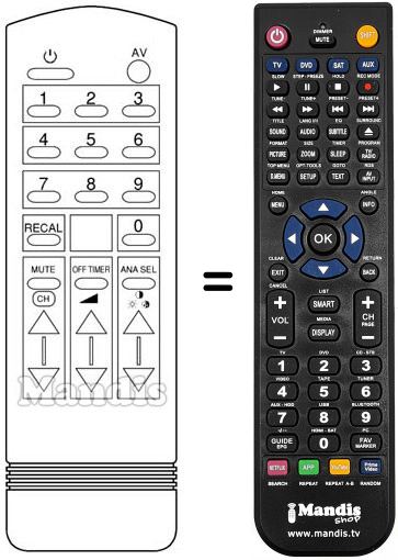 Télécommande qui remplace celle d'origine car elle possède les mêmes fonctions.