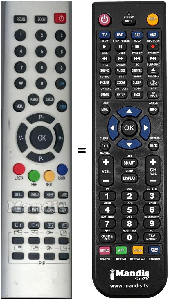 Il ne s'agit pas d'une télécommande universelle mais d'une télécommande qui remplace celle d'origine.