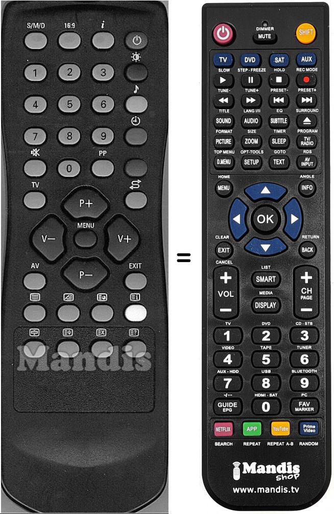 Télécommande qui remplace celle d'origine car elle possède les mêmes fonctions.