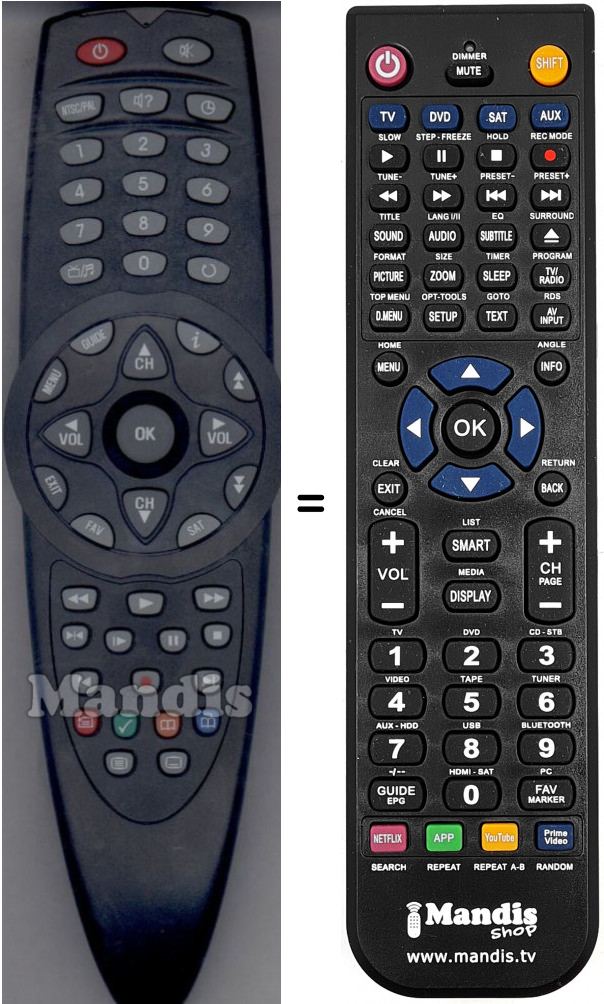 Il ne s'agit pas d'une télécommande universelle mais d'une télécommande qui remplace celle d'origine.