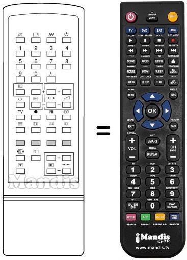 Télécommande qui remplace celle d'origine car elle possède les mêmes fonctions.