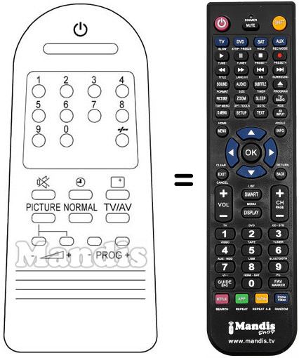 Il ne s'agit pas d'une télécommande universelle mais d'une télécommande qui remplace celle d'origine.