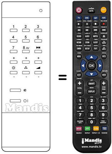 Télécommande qui remplace celle d'origine car elle possède les mêmes fonctions. Il ne s'agit pas d'une télécommande universelle mais d'une télécommande qui remplace celle d'origine. Vous recevrez la télécommande prête à fonctionner, vous n'aurez qu'à mettre les piles. Il n'est pas nécessaire de la programmer. Nous vous garantissons que la télécommande aura exactement les mêmes fonctions que celle d'origine.